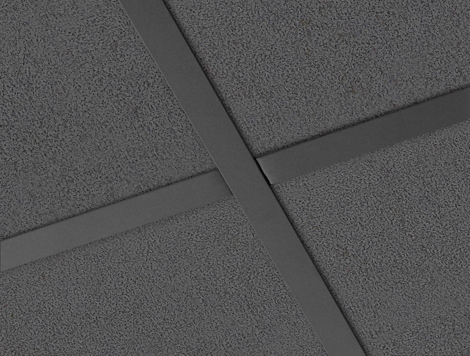 Alakattojärjestelmä, jossa on piilolistat ja puhdistettava musta pinta