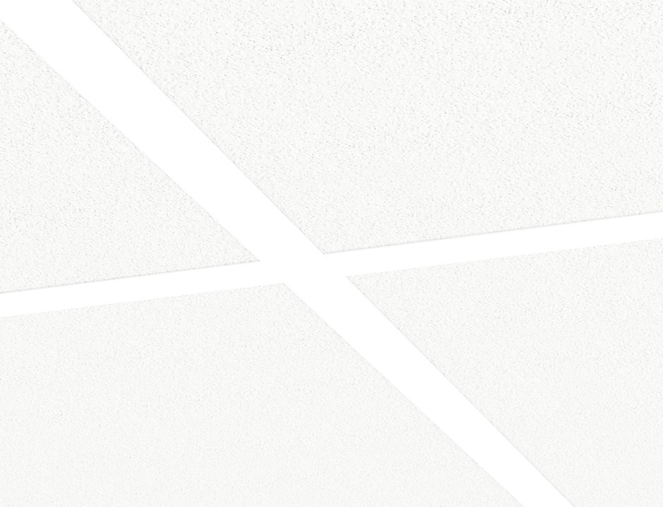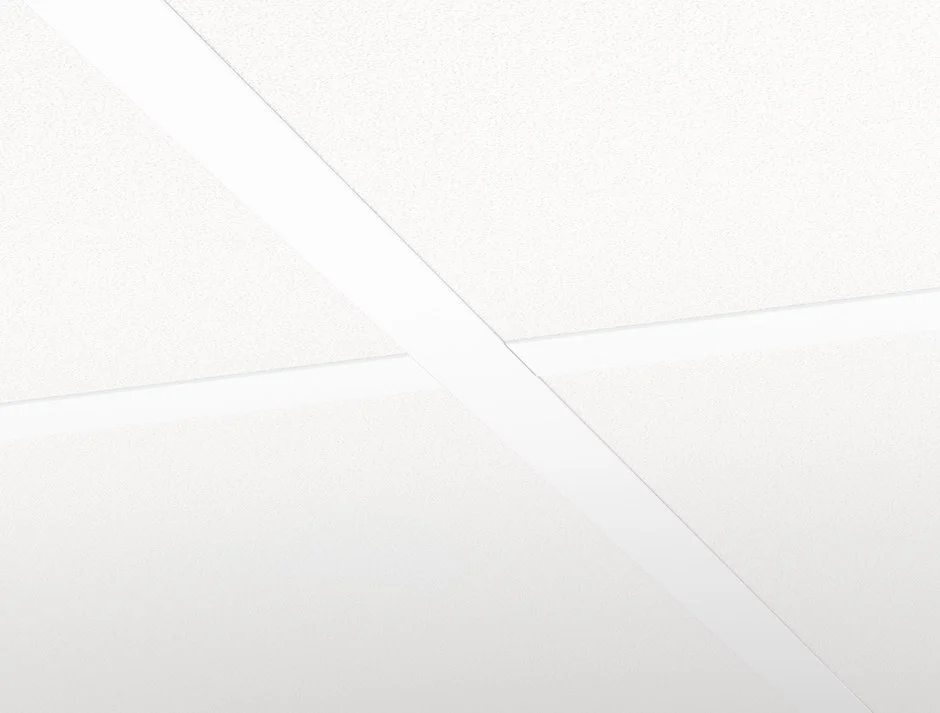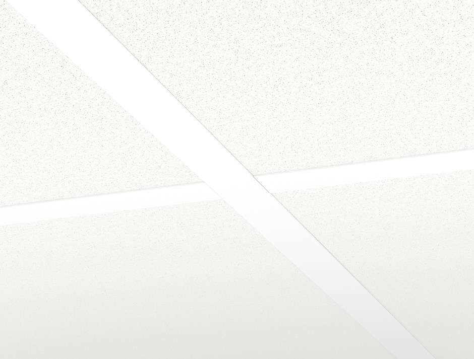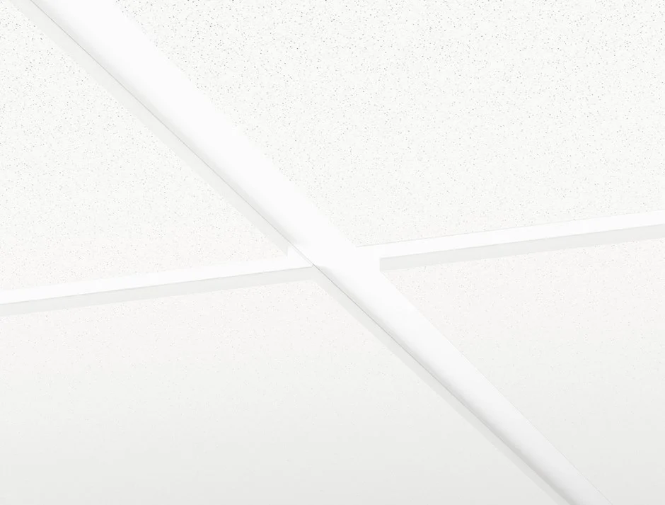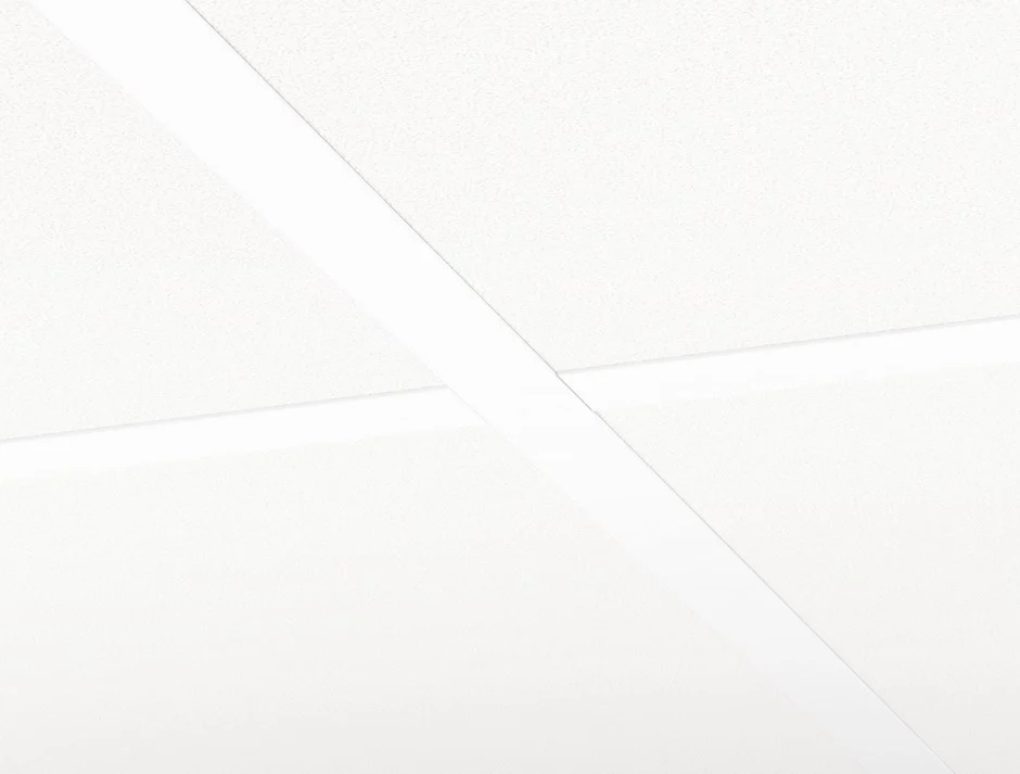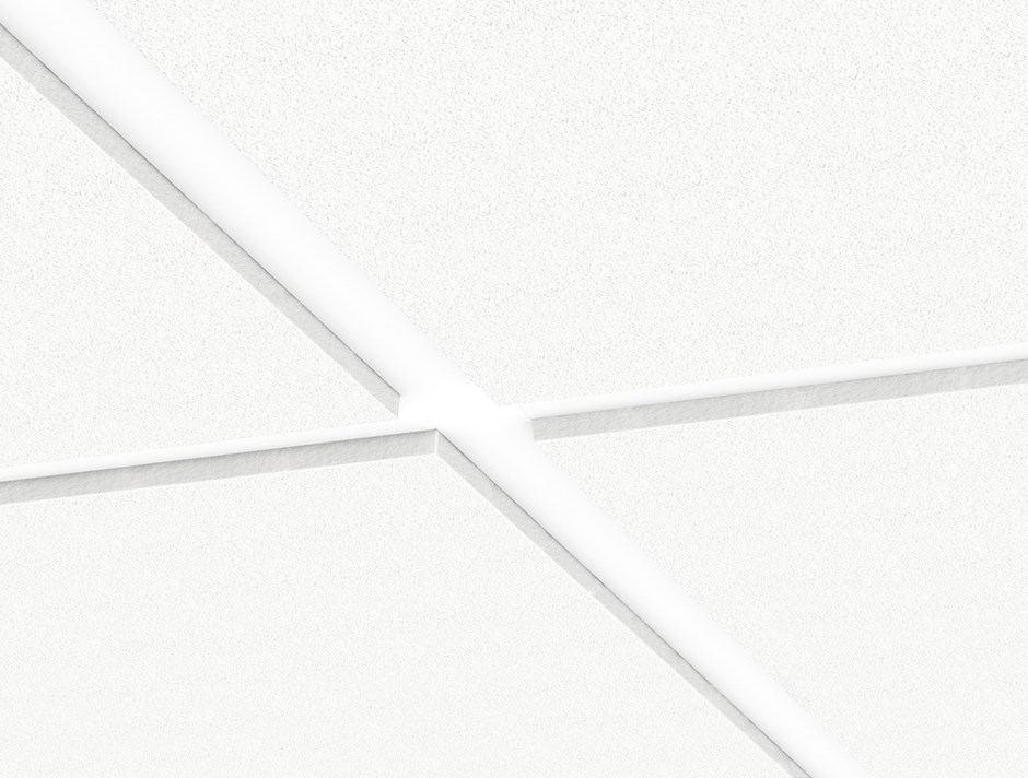 Hygieeninen akustiikkakatto kuiviin tiloihin upotetuilla listoilla