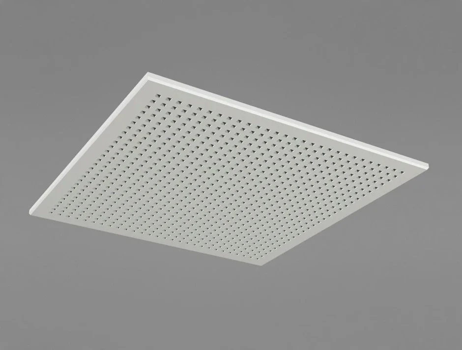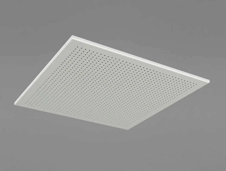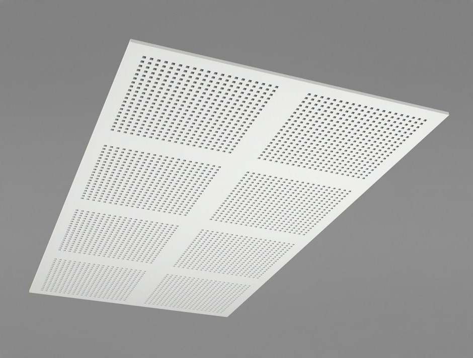 Kipsiakustiikkalevyt neliömäisellä reikäkuviolla ja upotetulla näkyvällä listalla